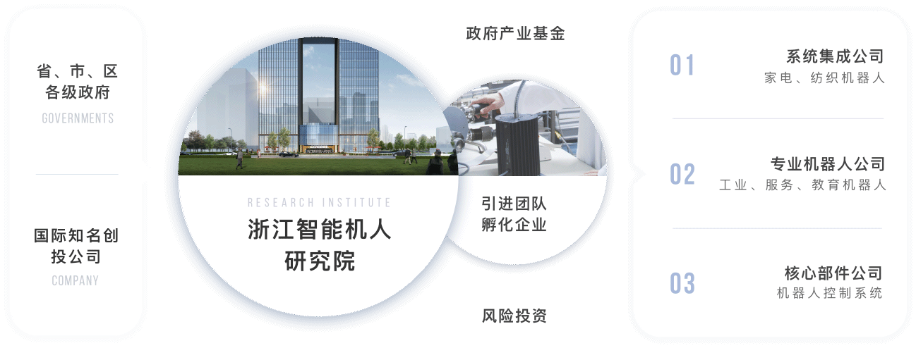 研究院依托浙江大學(xué)機(jī)器人研究中心和浙江省機(jī)器人產(chǎn)業(yè)發(fā)展協(xié)會合作的同時,吸收金沙江聯(lián)合資本、之江實驗室等多方位資源,并與聯(lián)盟成員單位及國內(nèi)外其他機(jī)器人研究機(jī)構(gòu)、知名機(jī)器人企業(yè)形成互補(bǔ)合作關(guān)系并取得多項成果,積極打造一個智能機(jī)器人產(chǎn)業(yè)技術(shù)平臺。