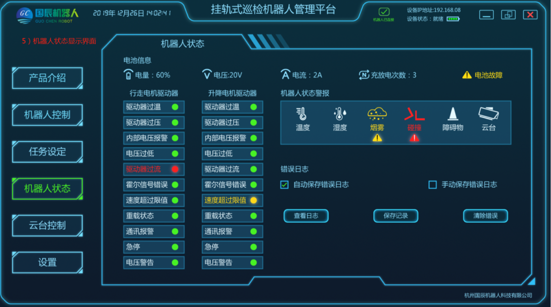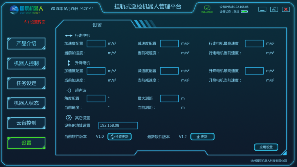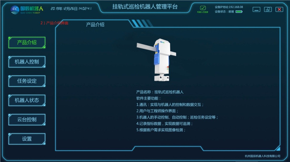 項目主要由移動機(jī)器人本體、軌道系統(tǒng)、采集設(shè)備、定位系統(tǒng)、供電和通信系統(tǒng)、后臺系統(tǒng)等結(jié)構(gòu)組成。在巡檢工作過程中,由用戶設(shè)定任務(wù)點,加裝采集設(shè)備,移動機(jī)器人根據(jù)控制指令在軌道上運動,將采集設(shè)備運送到指定位置采集數(shù)據(jù),且滿足所需要的負(fù)載量,速度;在機(jī)器人行駛過程中可實現(xiàn)自主爬坡、采集設(shè)備可根據(jù)監(jiān)測物體高度進(jìn)行升降調(diào)整等功能;配套的調(diào)試軟件支持手動、控制移動平臺運動;具有較強(qiáng)的適用性及拓展性,可自定義模塊搭配,自主設(shè)定任務(wù)點,自動巡檢、定點采集、自動充電等功能。
