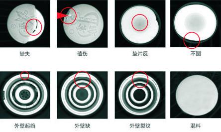 本系統(tǒng)通過采集高清的瓶蓋圖像,利用圖像分析處理技術,依據(jù)各類缺陷自身顏色、紋理、幾何特性等,可檢測出瓶蓋是否存在瓶蓋高、 瓶口缺陷、液位高低等缺陷。